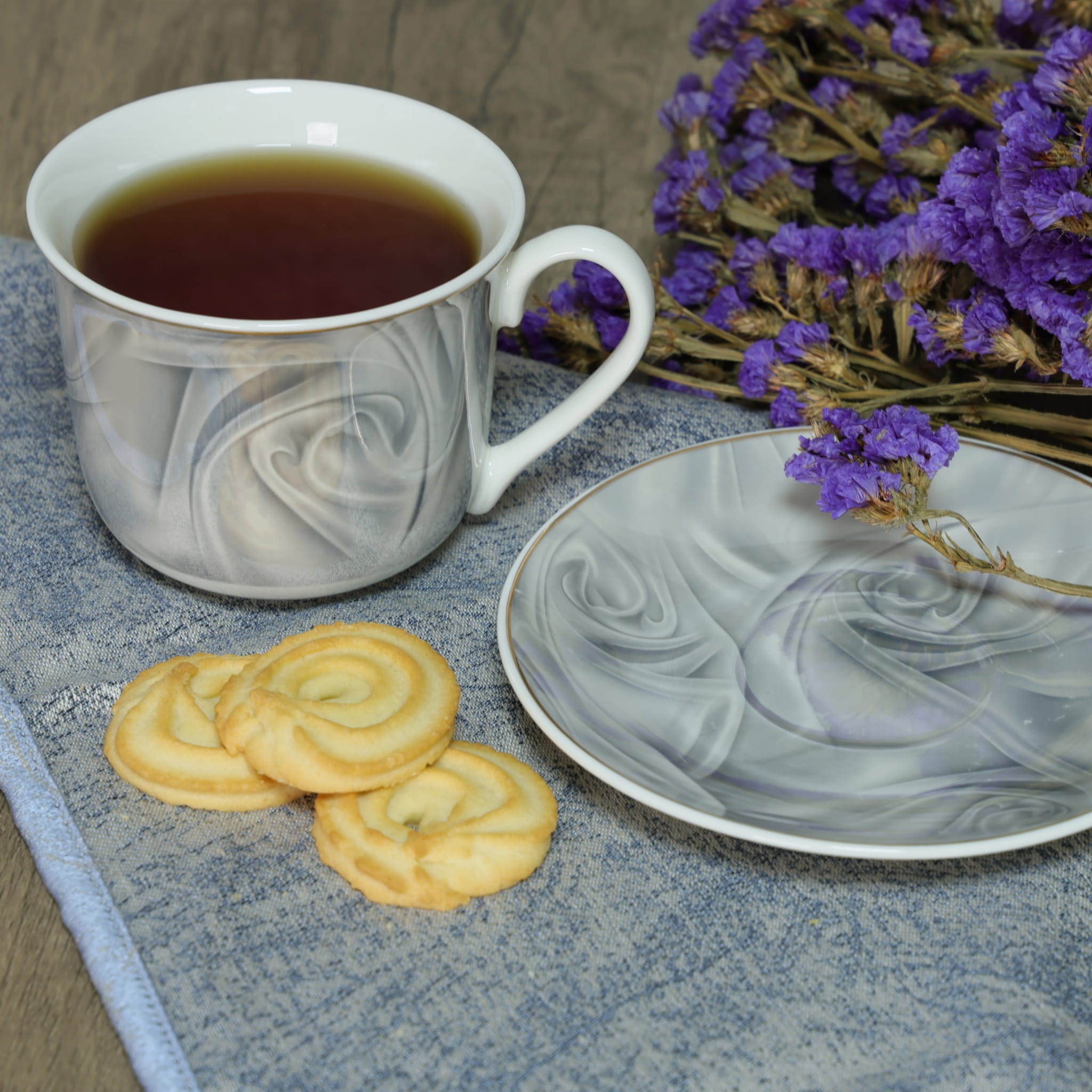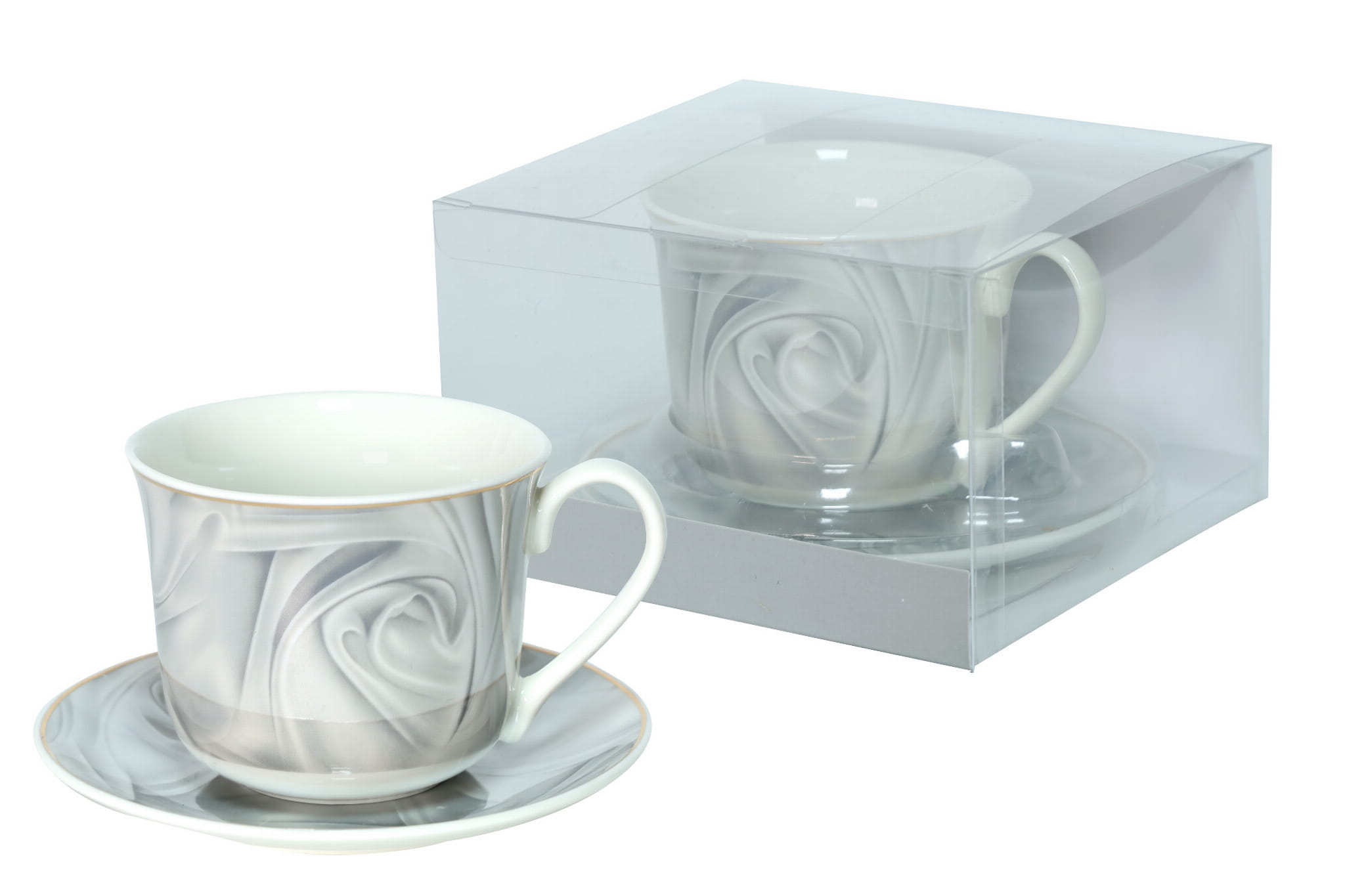 Filiżanka porcelanowa 400 ml Jumbo ze spodkiem 15,5 cm szara róża złoto