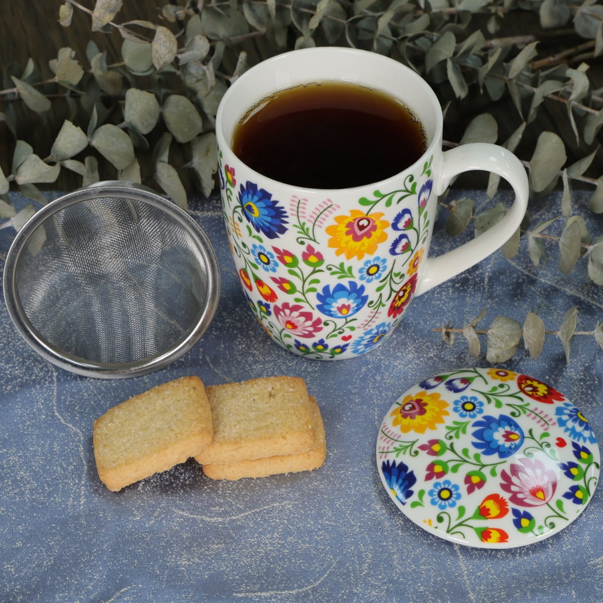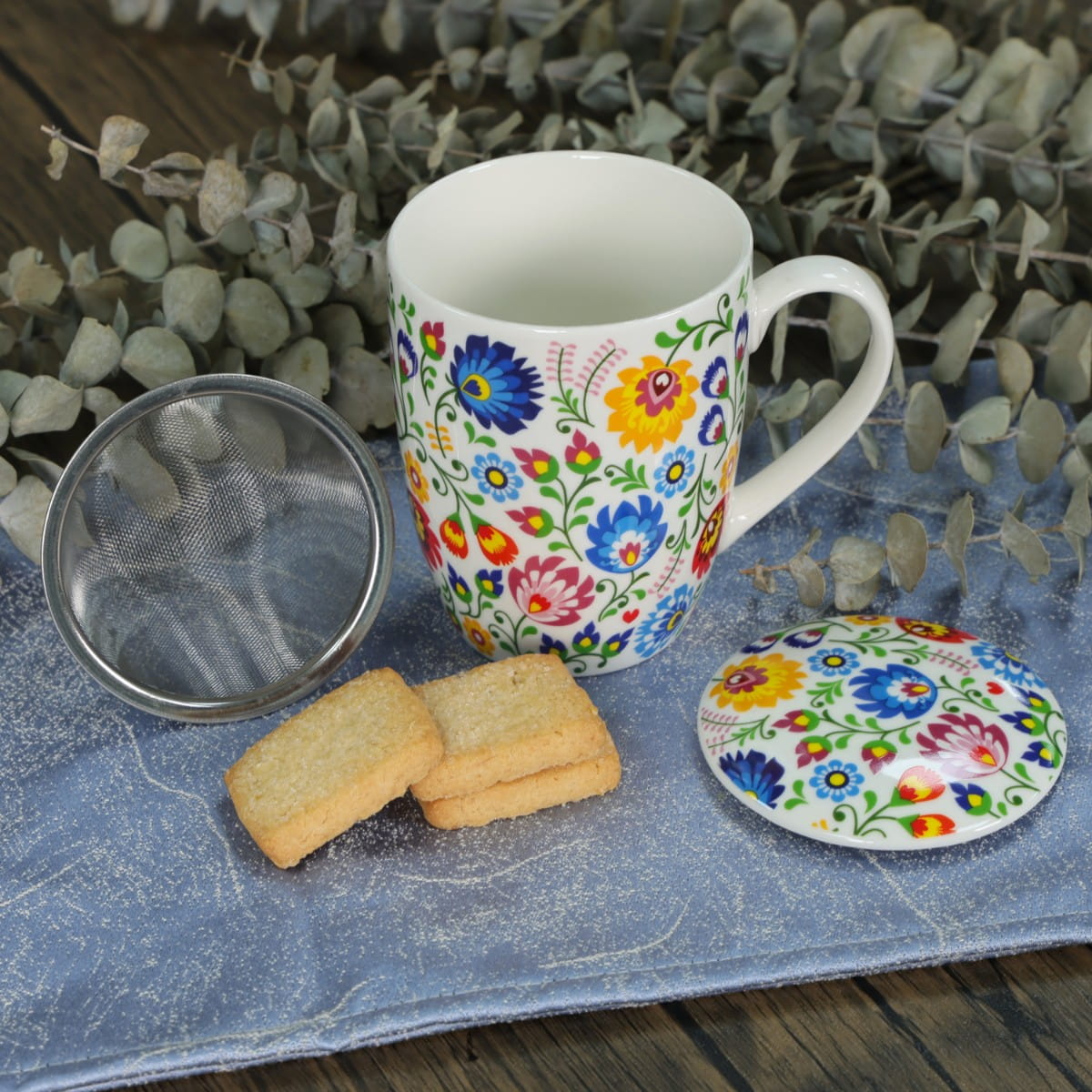 Kubek do kawy herbaty porcelanowy Livello zaparzacz 350 ml folklor łowicki