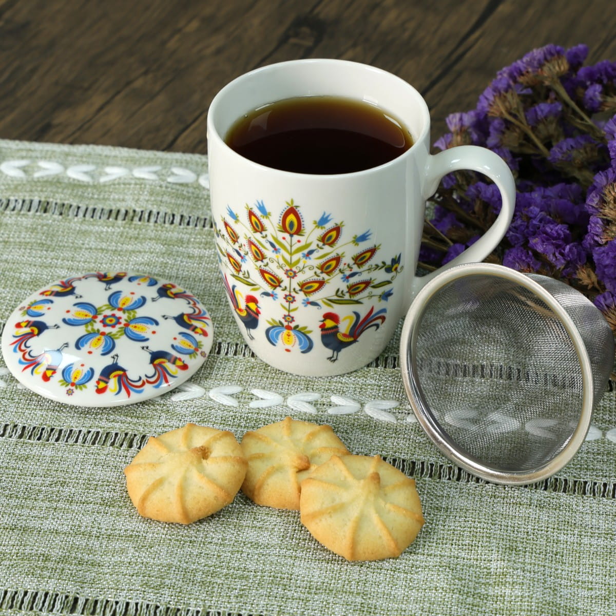 Kubek do kawy herbaty porcelanowy Livello zaparzacz 350ml folklor łowicki