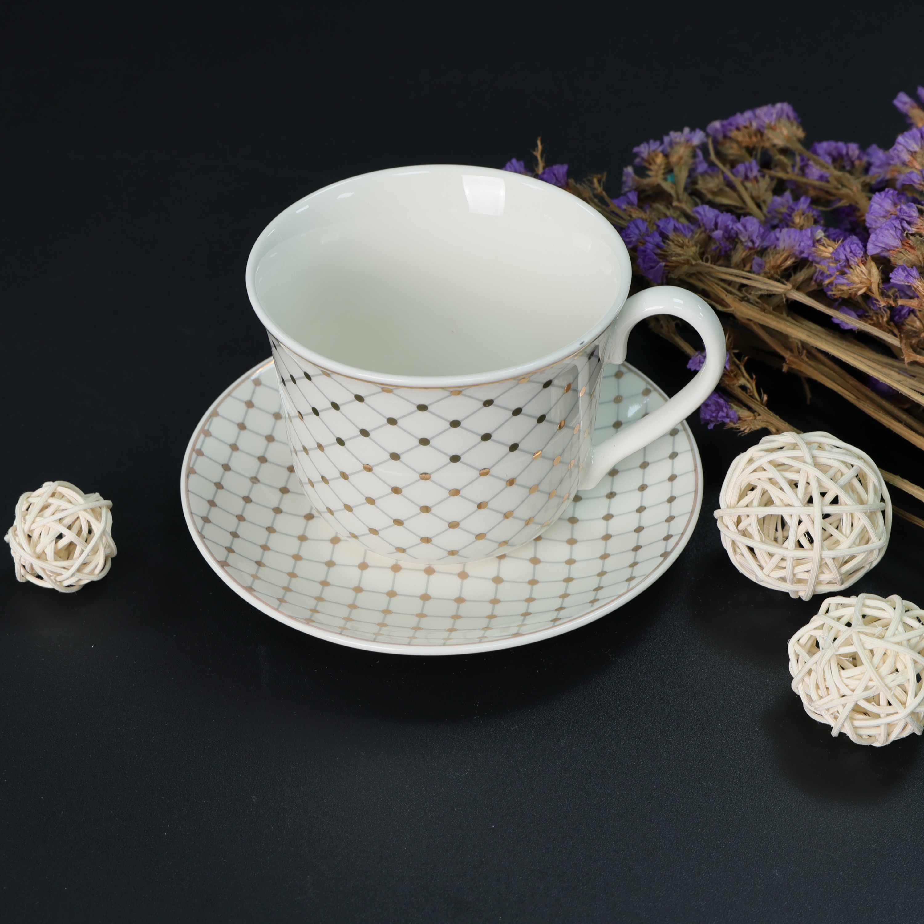 Livello filiżanka porcelanowa 400 ml GRANDE ze spodkiem 15,5 cm złote kropki