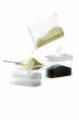 Pojemnik z dozownikiem stworzony został z myślą o łatwym dostępie do artykułu znajdującego się w nim, bez konieczności zdejmowania całej pokrywki. Co więcej, posiada dwa małe okienka z zamykanymi szczelnie klapkami, co pomoże nałożyć odpowiednią ilość produktu, bez obawy, że wysypie nam się za dużo. Jeden otwór pozwala na nałożenie dużej ilości produktu, drugi umożliwia dozowanie mniejszej porcji. Transparentne ścianki ułatwiają rozpoznanie tego, co znajduje się wewnątrz pojemnika, zaś kolorowa pokrywka stanowi pewnego rodzaju element ozdoby.
