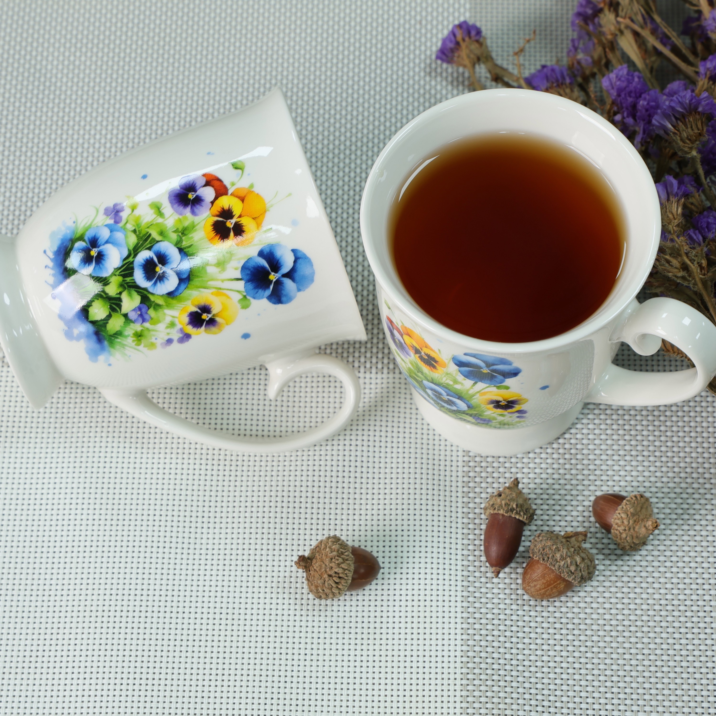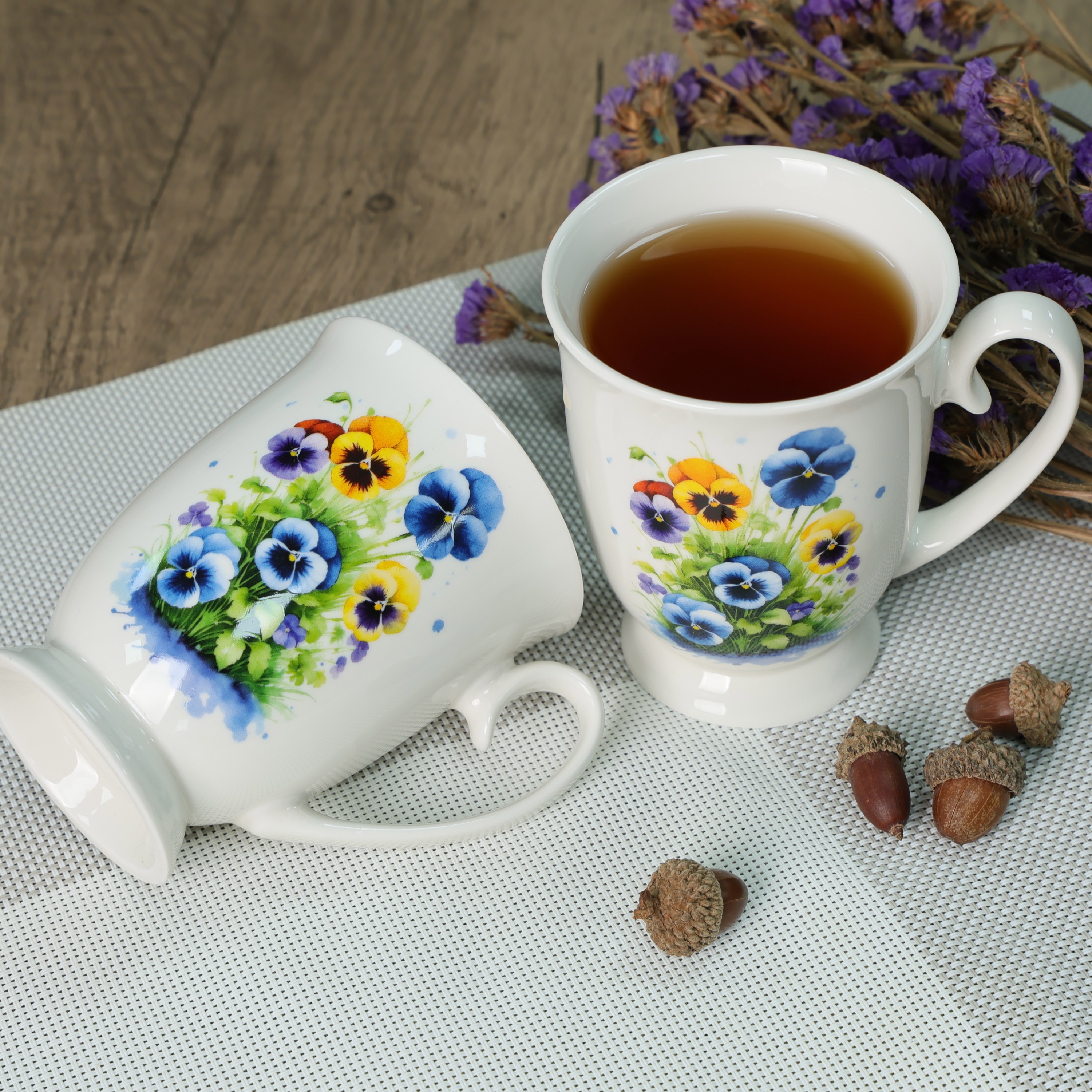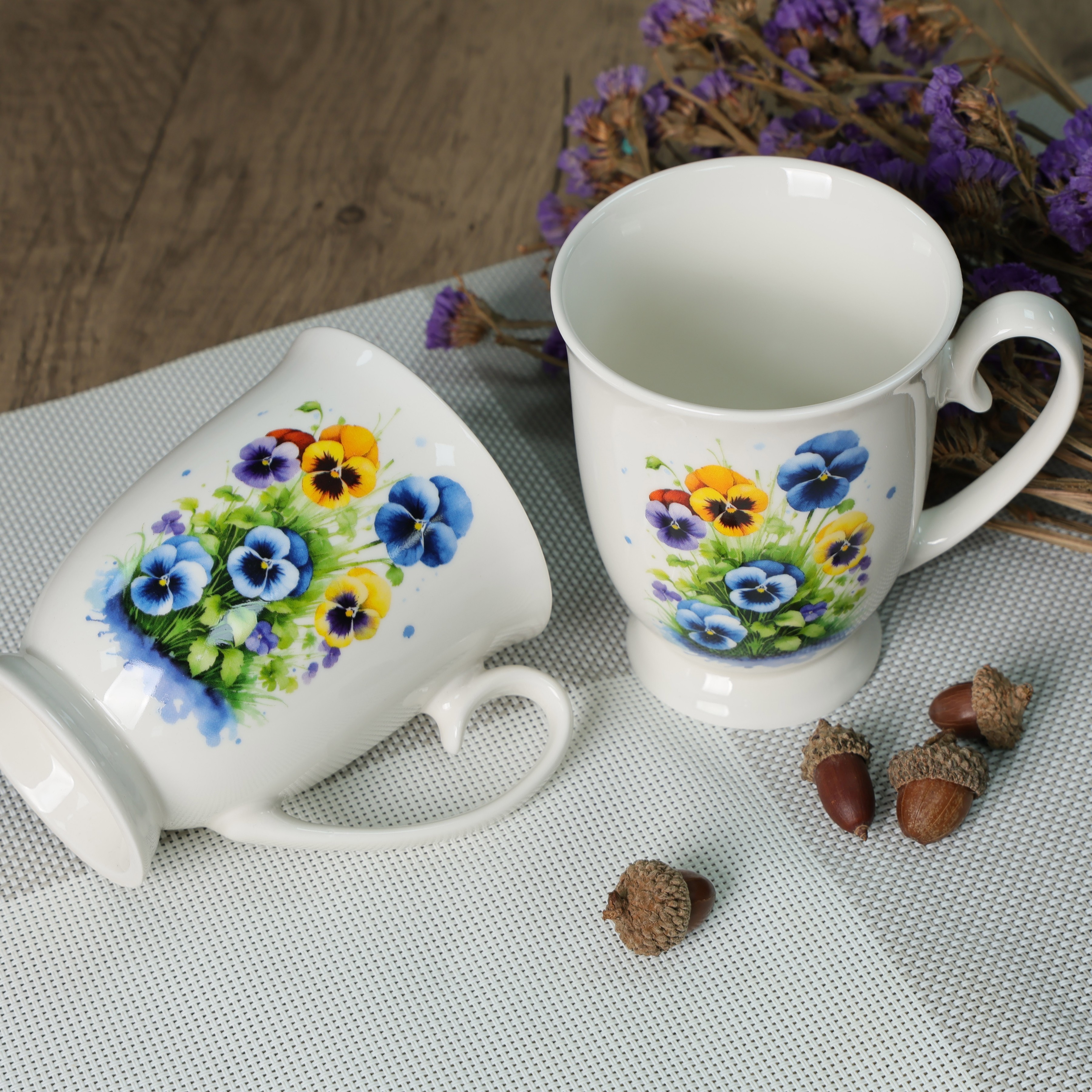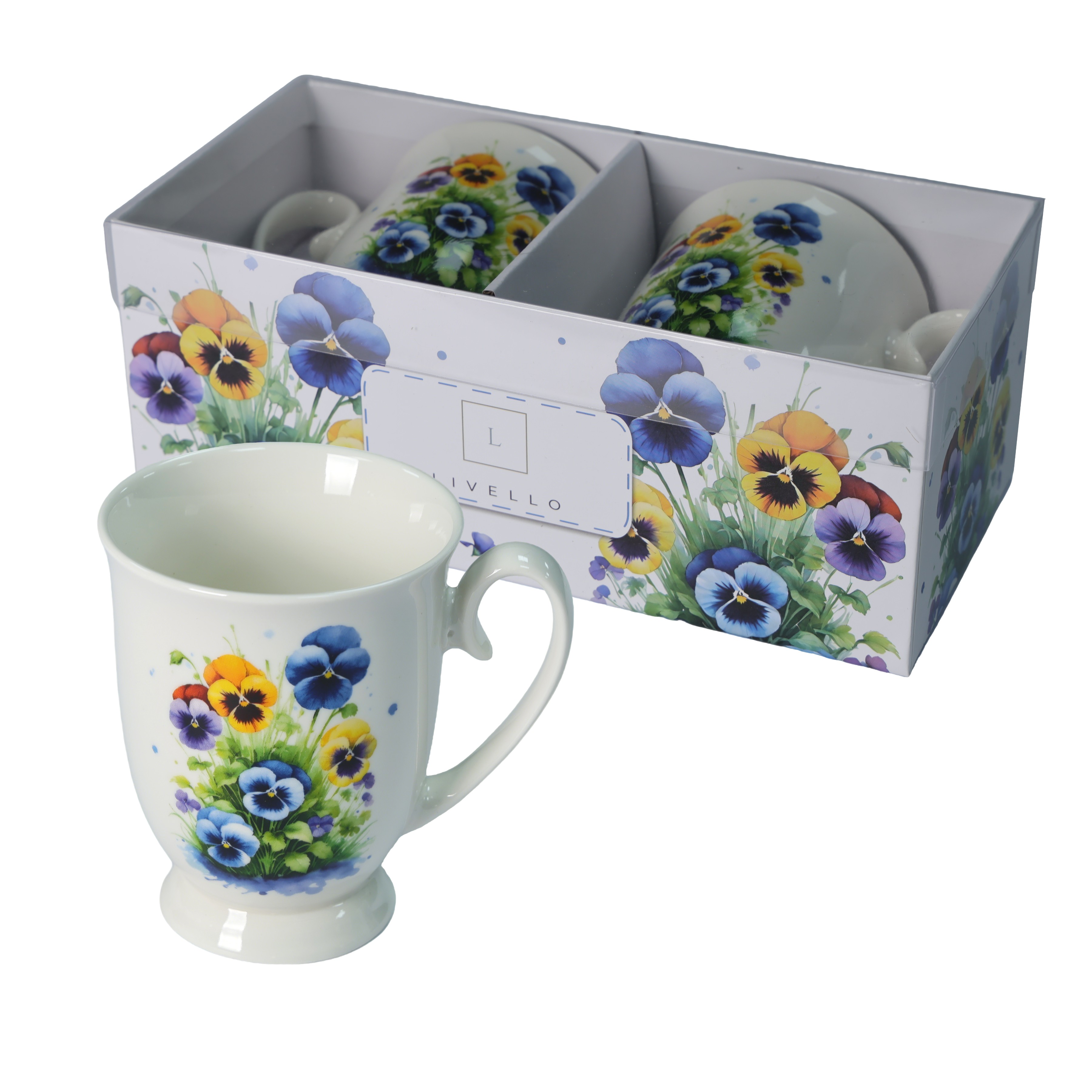Zestaw 2 x kubek porcelanowy ozdobne pudełko 350ml Livello prezent bratki