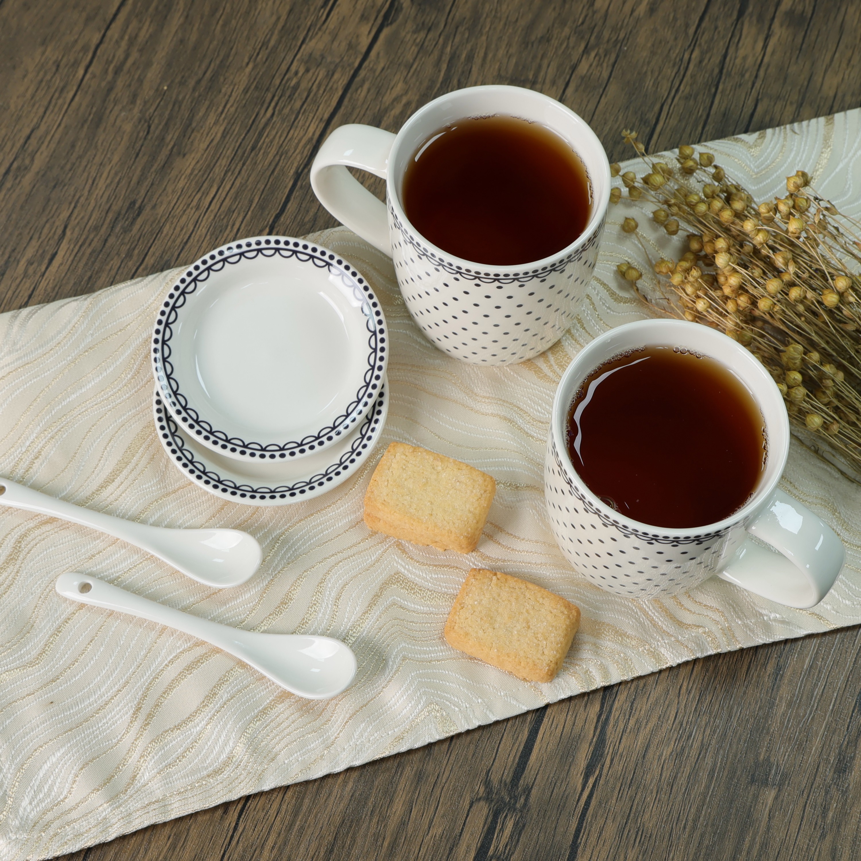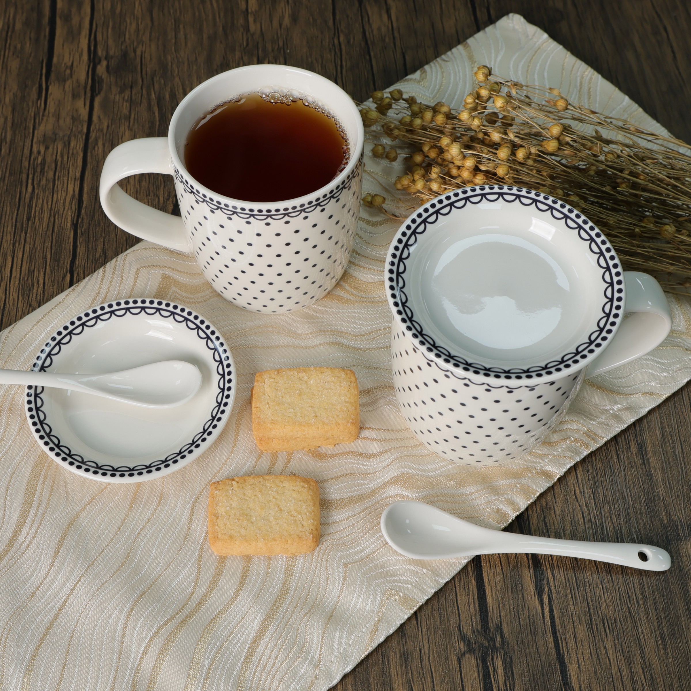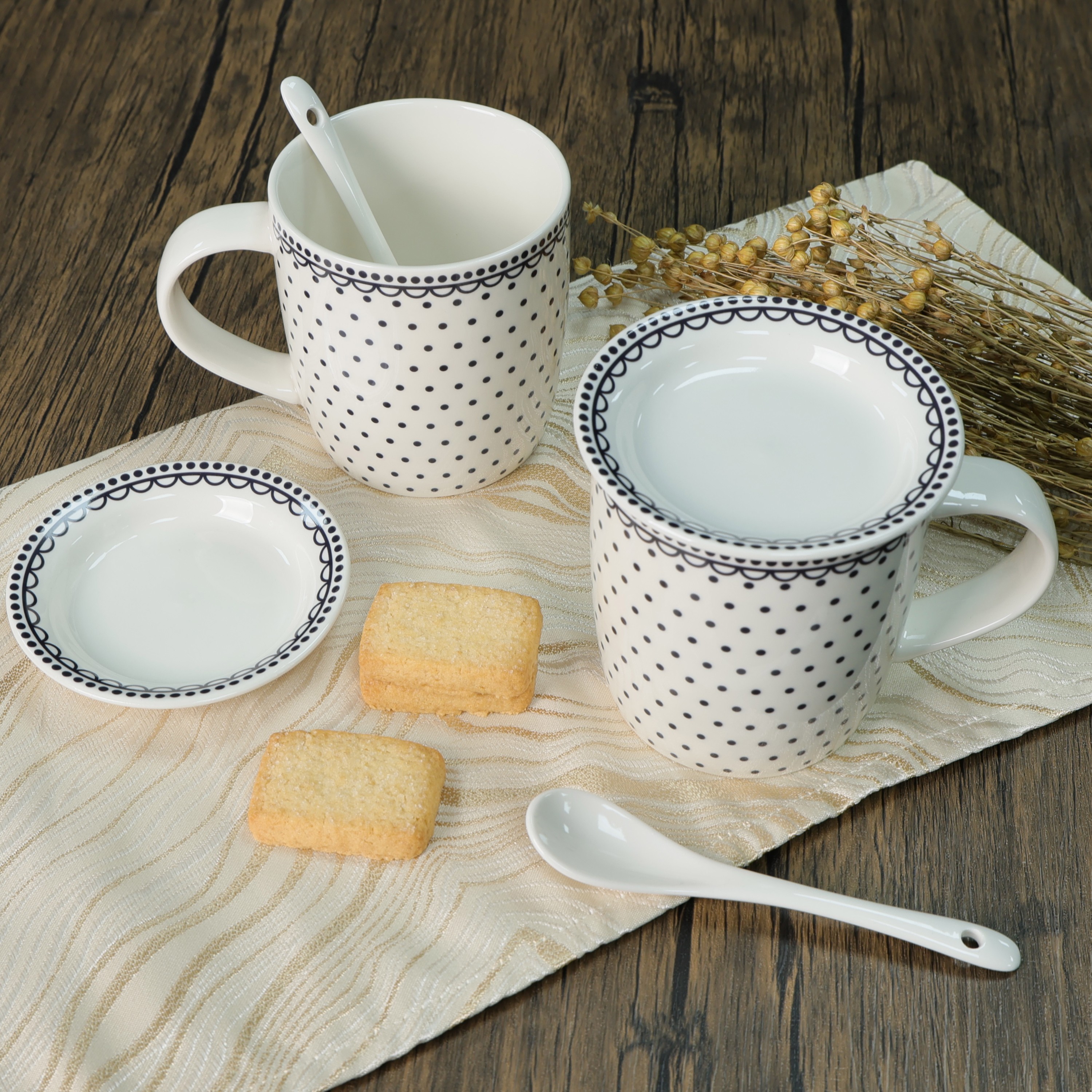 Zestaw 2 x kubek porcelanowy prezent 340 ml Livello spodek łyżeczka kropki
