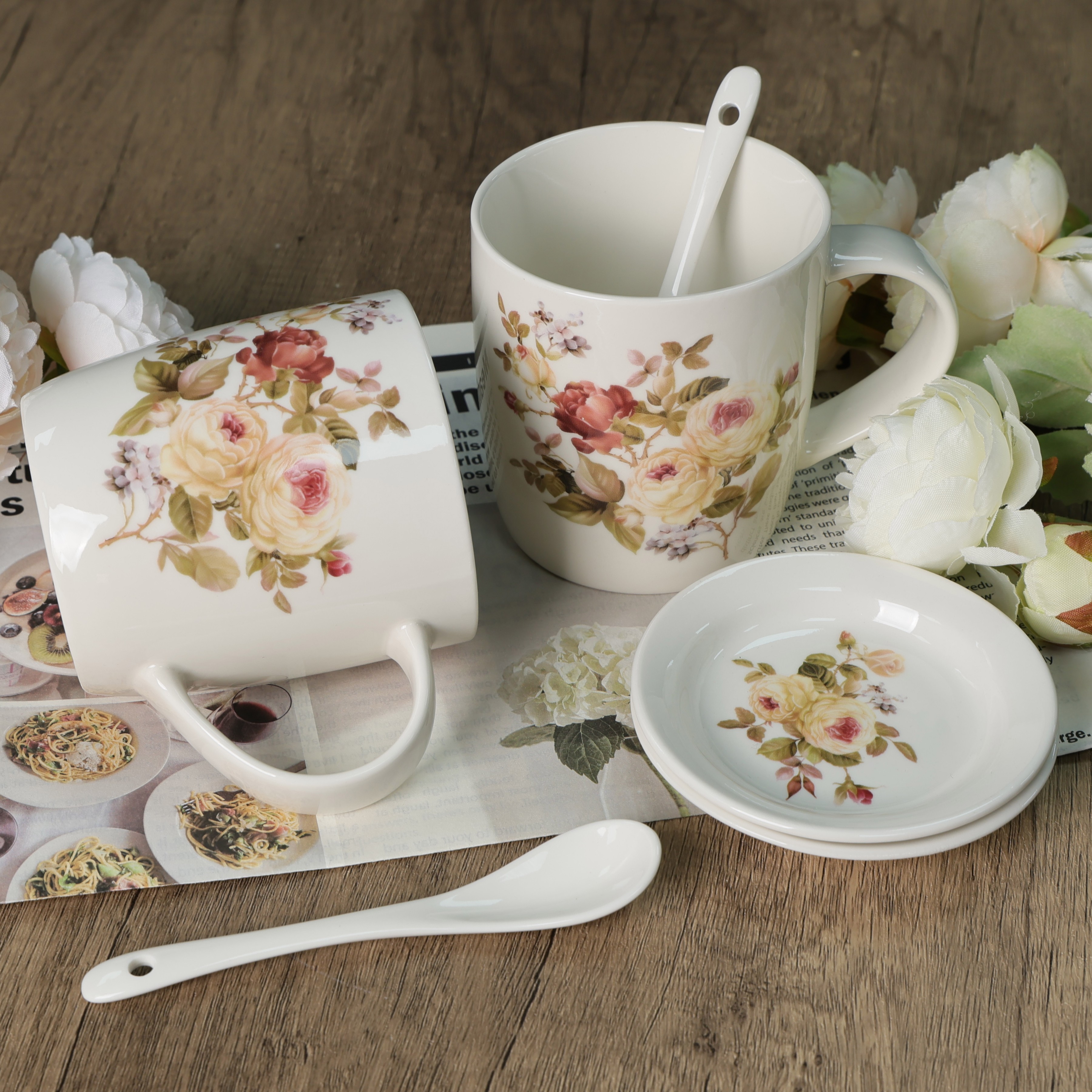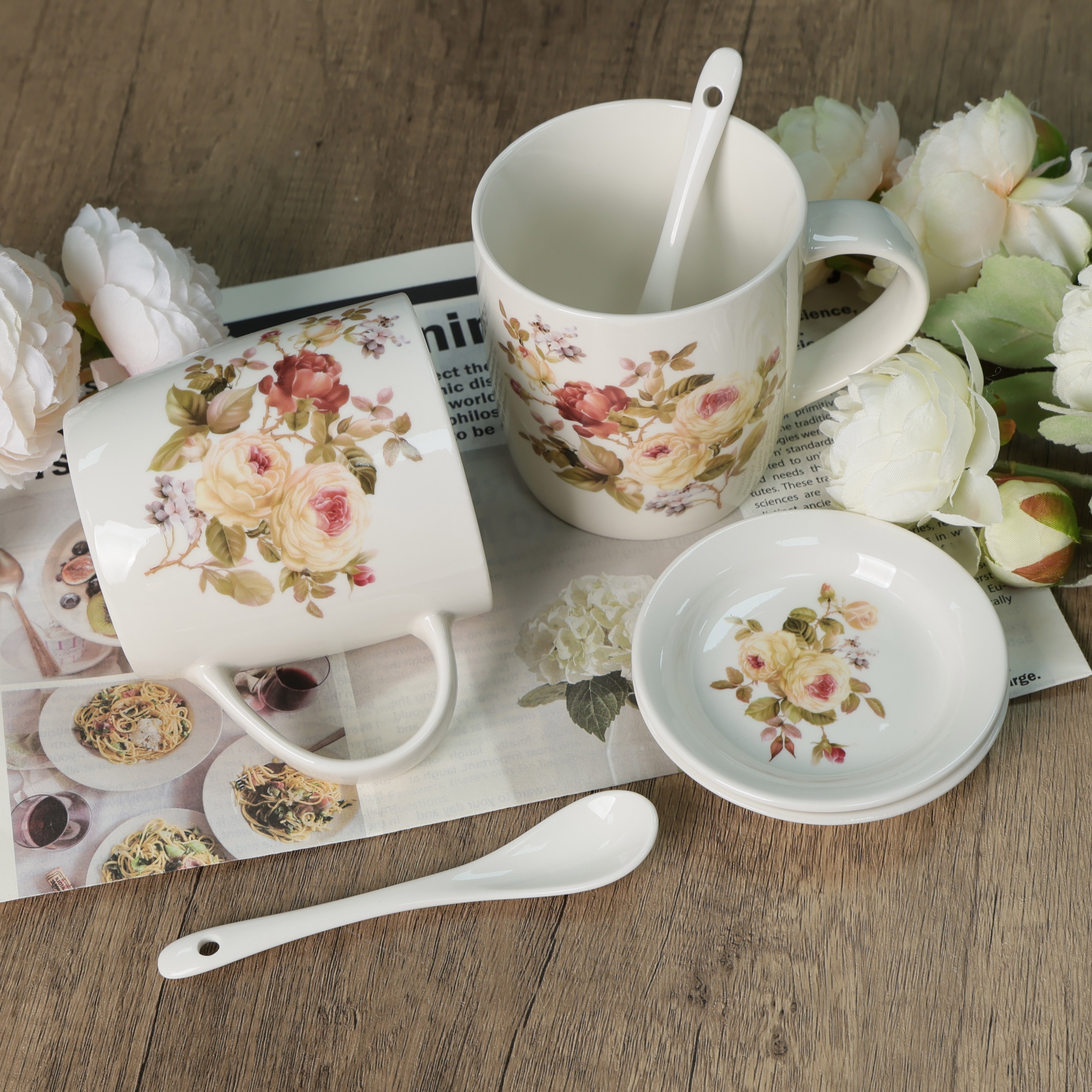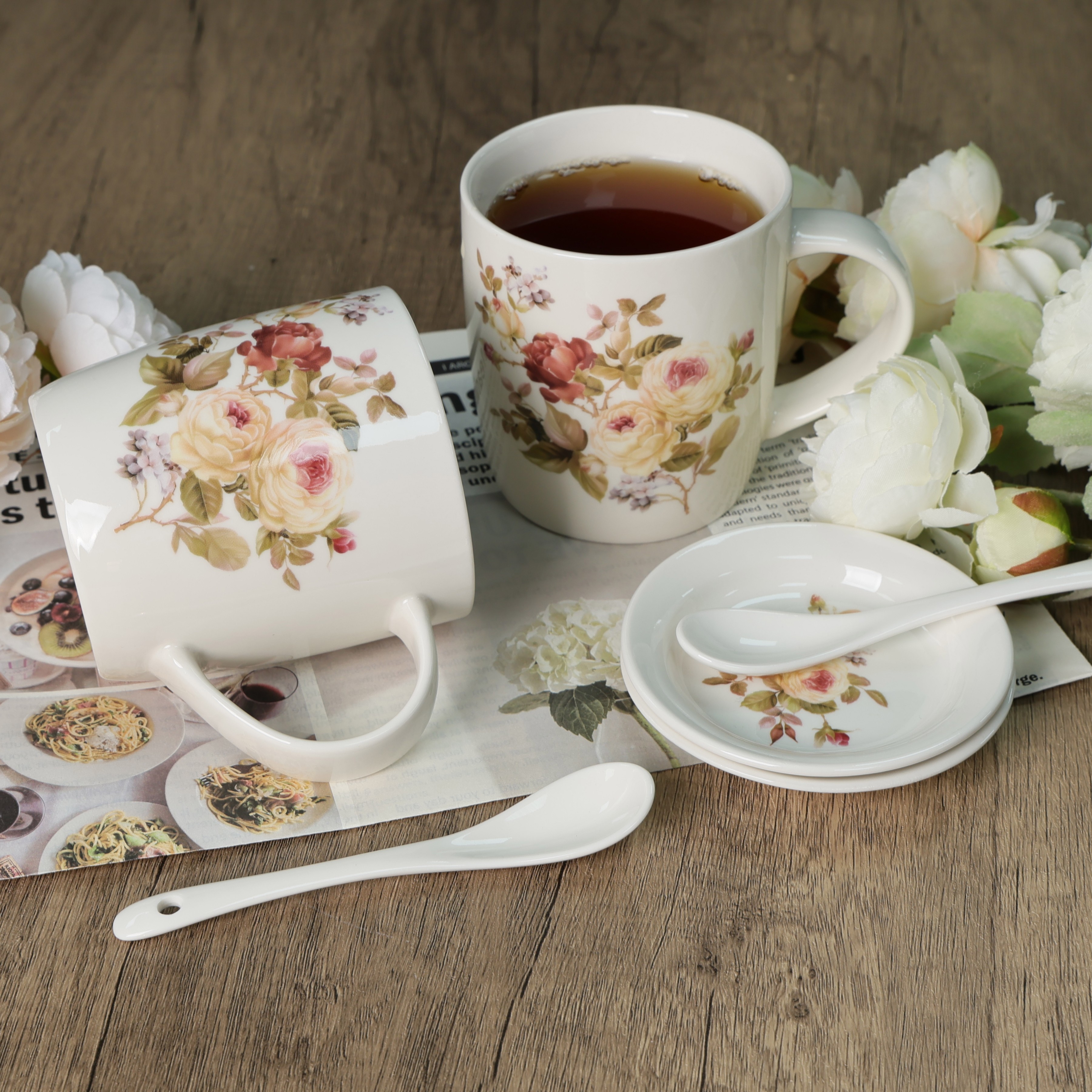 Zestaw 2 x kubek porcelanowy prezent 340 ml Livello spodek łyżeczka róża