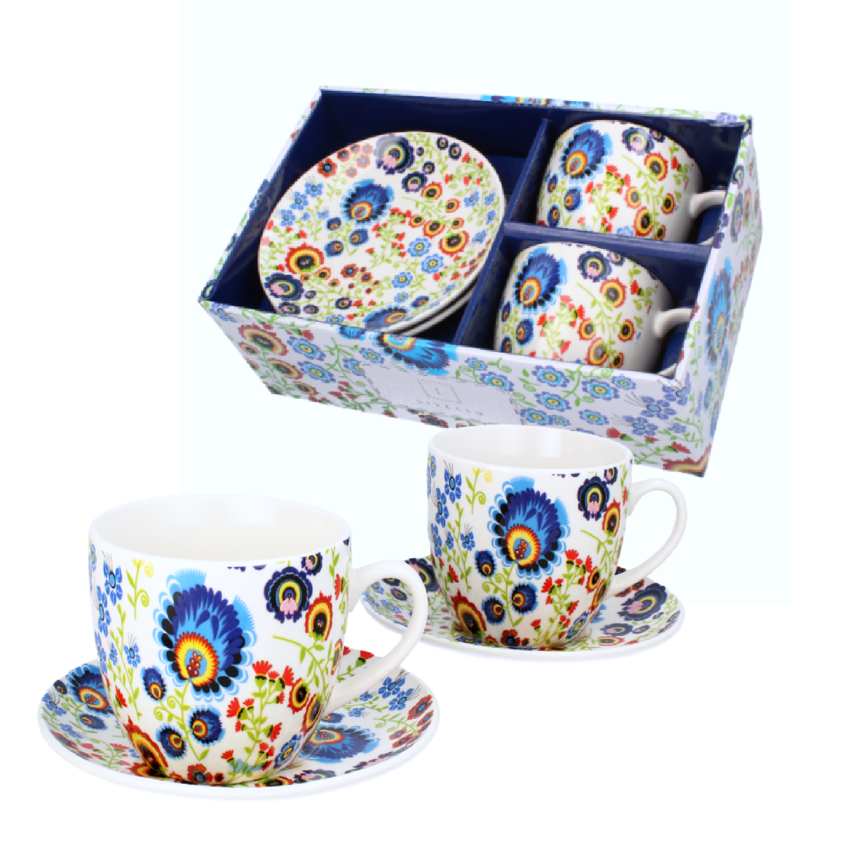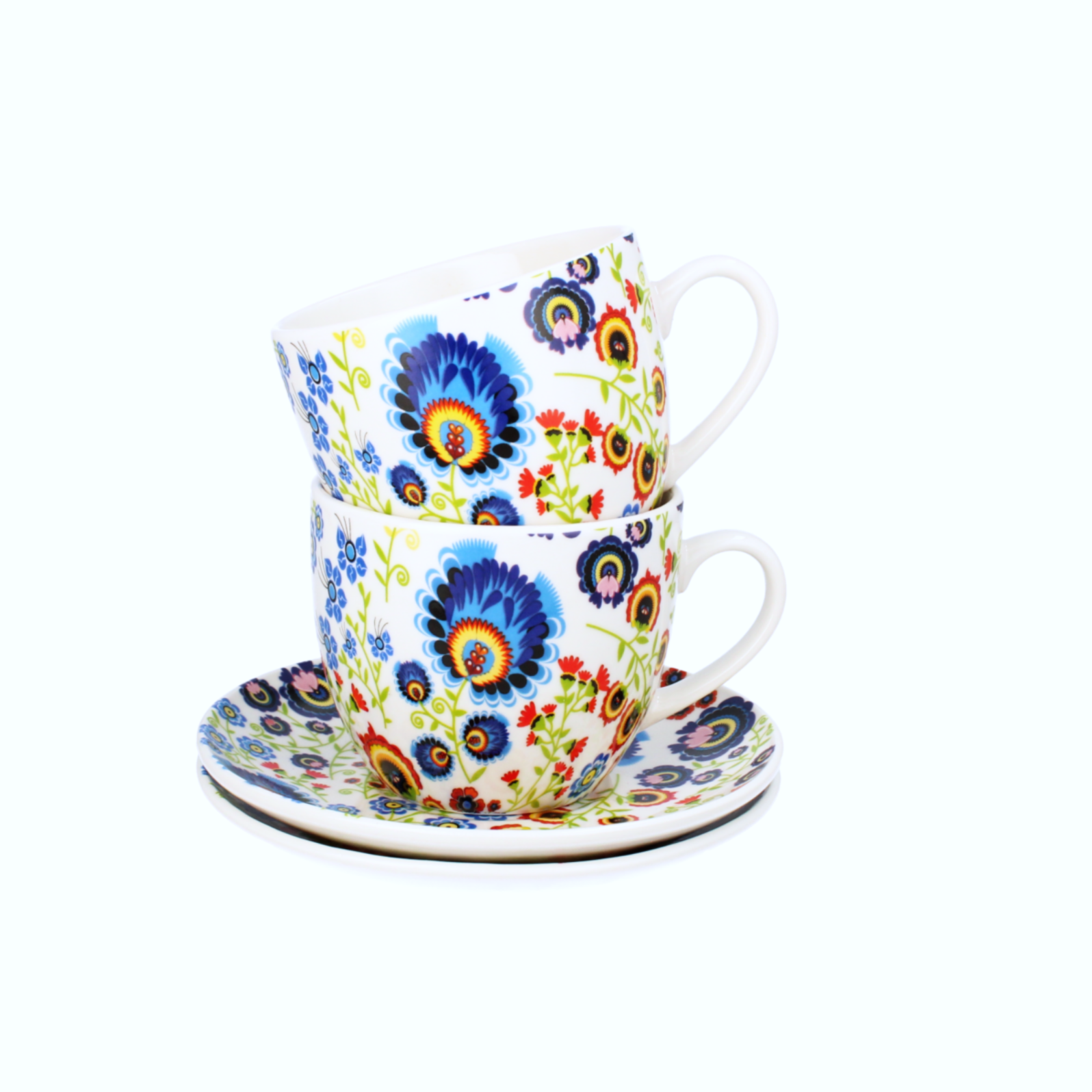 Zestaw 2x filiżanka porcelanowa 250ml ze spodkiem 14 cm folklor łowicki