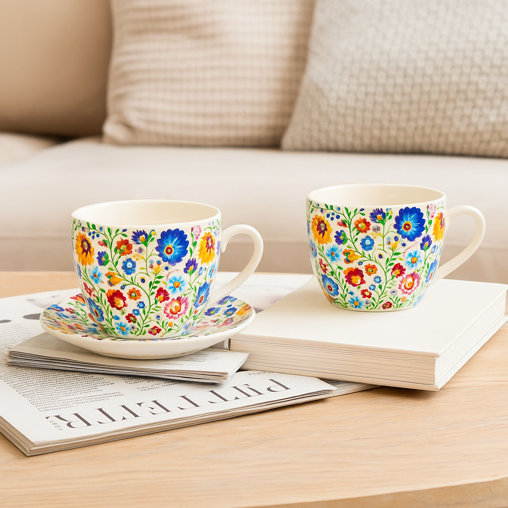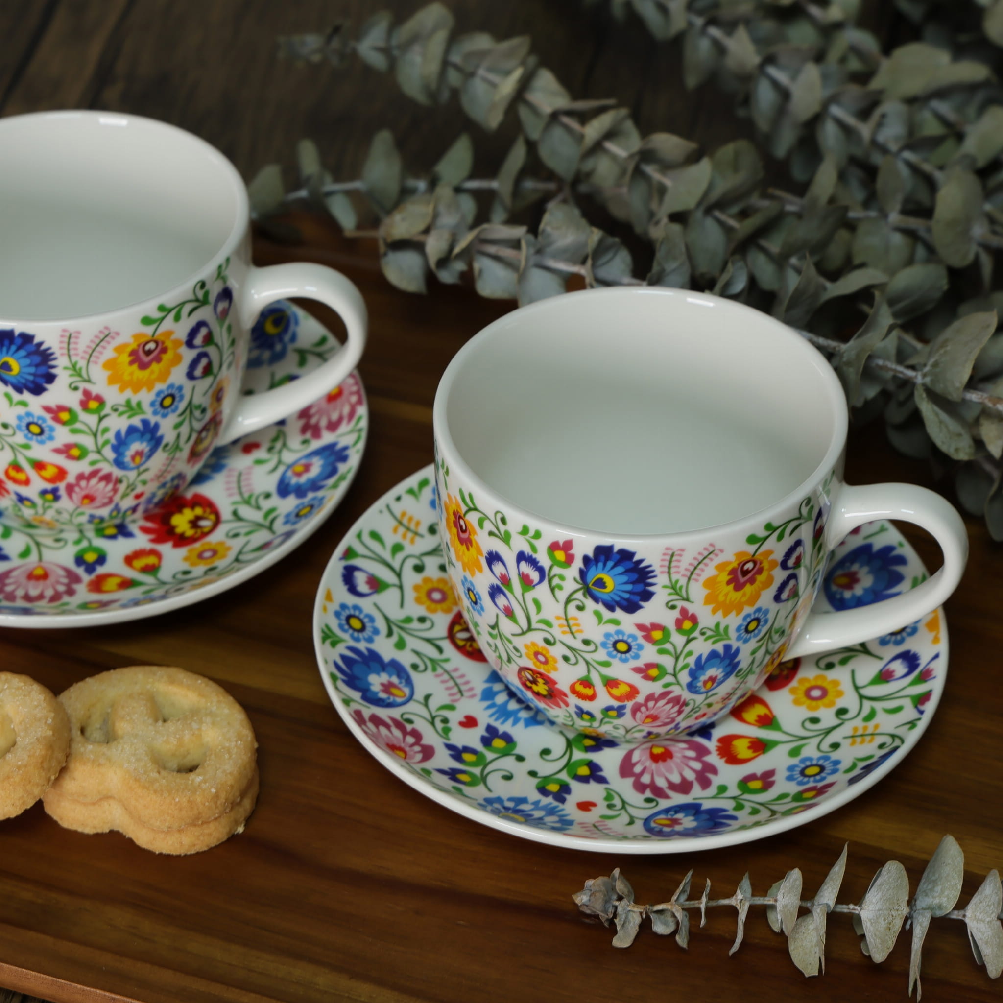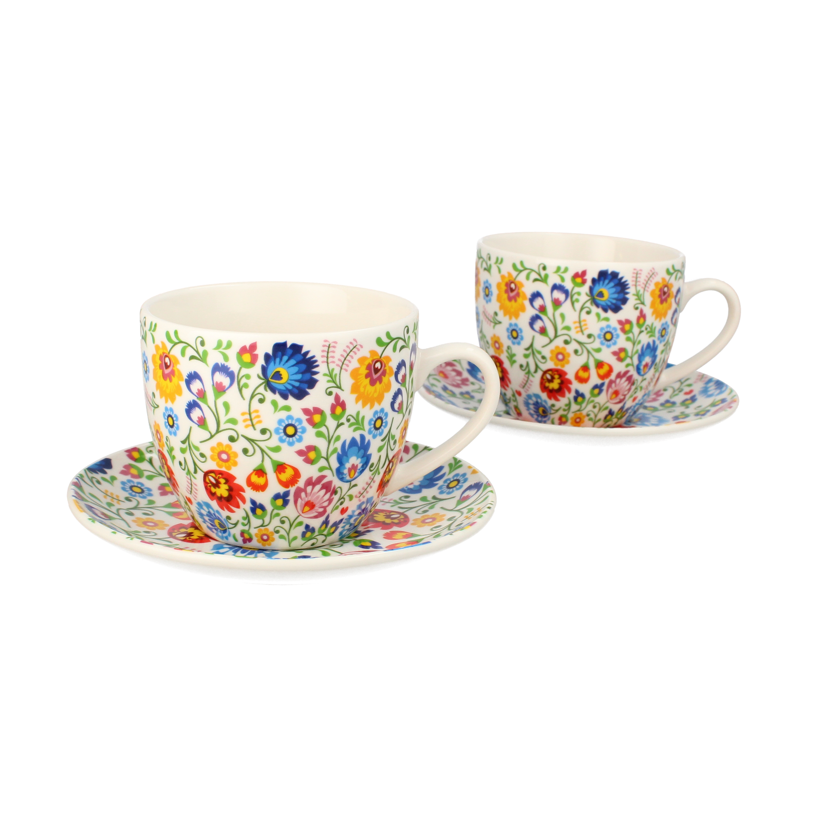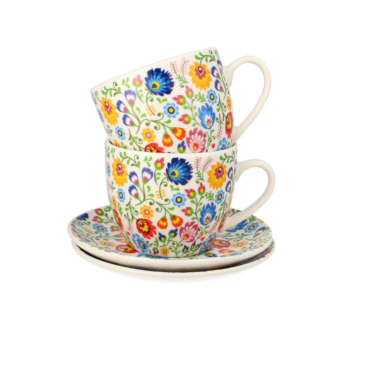 Zestaw 2x filiżanka porcelanowa 250ml ze spodkiem 14 cm folklor łowicki